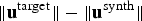 $ \Vert {\bf u}^{\rm target}\Vert - \Vert {\bf u}^{\rm synth}\Vert $
