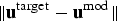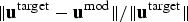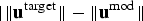 $ \Vert {\bf u}^{\rm target} - {\bf u}^{\rm mod}\Vert $