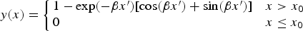 (13) $$y(x) = \left\{ {\matrix{ {1 - \exp ( - \beta {x}^{\prime})[\cos (\beta {x}^{\prime}) + \sin (\beta {x}^{\prime})]} \hfill & {x \gt x_0} \hfill \cr 0 \hfill & {x \le x_0} \hfill \cr}} \right.$$