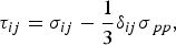 (5) $$\tau _{ij} = \sigma _{ij} - \displaystyle{1 \over 3}\delta _{ij}\sigma _{\,pp},$$