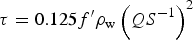 $\tau = 0.125 f^{\prime} \rho _{\rm w} \left(QS^{-1} \right)^2$