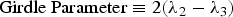 Both parameters range from zero to unity as a fabric develops from isotropic to a perfect form of their respective types. Any pole fabric with the property that λ 1 > λ 2 = λ 3 will have a girdle parameter of zero, and likewise any girdle fabric with the property that λ 1 = λ 2 > λ 3 will have a pole parameter of zero. This means that these parameters are independent in the sense that pole or girdle development will not affect the fabric's girdle or pole parameter, respectively.