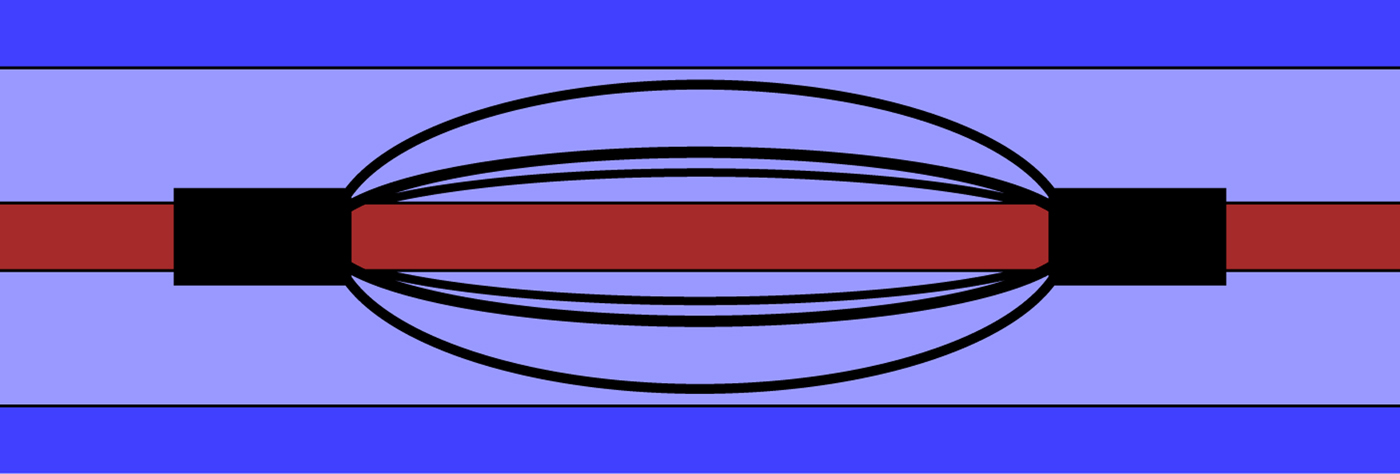 We approximate the first Fresnel zone as an elongated toroidal object with a half cross section as is depicted in the red region of Figure 14. This cross section is half of an ellipse with semi-major axis b and semi-minor axis a. From the definition of the first Fresnel zone, it follows that b = L/2 + λ/4 and a 2 + (L/2)2 = b 2. The solution for a is
