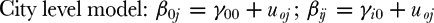 Because the dataset used in our study contains multilevel data (city and firm levels), hierarchical linear modeling (HLM) is a suitable tool for our analyses (Raudenbush & Bryk, Reference Raudenbush and Bryk2002). We used the following formulas for HLM:
