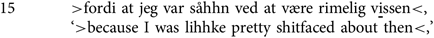 The clause in line 7 also has F–så. It is not clear if this clause constitutes a separate turn from the one in lines 3–4, as Lis has been speaking in overlap with Asta almost throughout Asta’s turn in lines 5–6. The scope of the protasis in this clause is not clearly delimited but refers to at least the assertion in lines 1–2 and presumably also her own realization in lines 3–4.