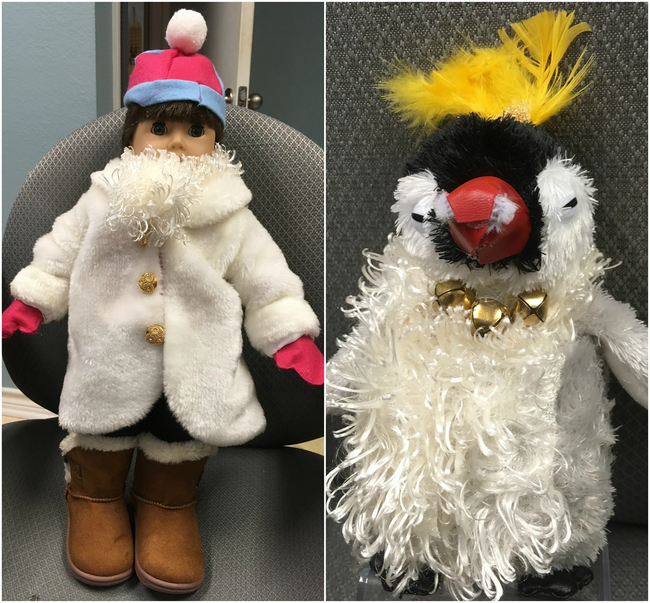 A primary objective of a PolarTREC teacher is to convey the scientific nature and explanations of observations and engage in a dialogue with various audiences to potentially cultivate a curiosity and spark an interest in polar science (https://www.polartrec.com/about/goals-and-objectives). In an effort to reach out to elementary students, Hademenos collaborated with fashion design students at his high school to help him design and create two fictional characters for his blog. They created a young girl who liked exploring and was curious about everything polar, and a boy penguin who would serve as her ever-inquisitive sidekick. The students engaged in a very deliberate process, creating sketches of the two characters, followed by a detailed identification of possible textile materials that might be used to create cold weather gear. They collaborated in efforts to create models of these two characters, developing the clothing and accessory features for the two characters. The only thing left was to name the two characters, an honour bestowed upon the students. The students chose Anastasia for the girl doll and Kiwi for the boy penguin (Fig. 2). This cross-curricular project successfully engaged secondary students in learning about polar science, as well as helping their teacher reach a younger audience.