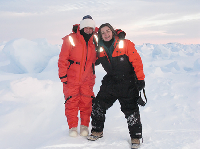 Fig. 3. Teacher Lollie Garay and researcher Dr. Patricia Yager conducting polar research in Utqiagvik (formerly Barrow), Alaska. (Photo by Lollie Garay, courtesy of ARCUS.)