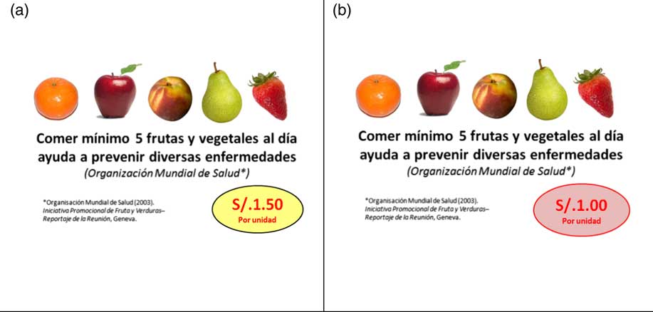 The present study is the first one in Peru and probably one of the first in Latin America to explore how quick, low-cost, simple interventions using combined marketing tools such as promotional messages, product placement and changes in price of healthy items can make a big difference in consumer purchasing and subsequent health behaviours. According to Epstein et al.( Reference Epstein, Jankowiak and Nederkoorn 31 ), this kind of experimental research is still in an early stage. Therefore, more of these approaches are needed, especially in developing countries.