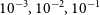 $10^{-3},10^{-2},10^{-1}$ and