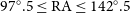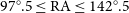 $97^{\circ}.5 \leq \textrm{RA} \leq 142^{\circ}.5$ and DEC range