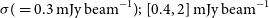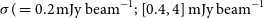 $\sigma(=0.3\,\mathrm{mJy\,beam}^{-1});\ [0.4, 2]\,\mathrm{mJy\,beam}^{-1}$