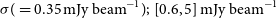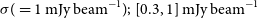 $\sigma(=1\,\mathrm{mJy\,beam}^{-1});\ [0.3, 0.6]\,\mathrm{mJy\,beam}^{-1}$