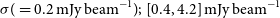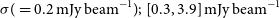 $\sigma(=0.2\,\mathrm{mJy\,beam}^{-1});\ [0.3, 3.9]\,\mathrm{mJy\,beam}^{-1}$