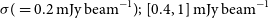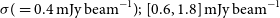 $\sigma(=0.4\,\mathrm{mJy\,beam}^{-1});\ [0.6, 1.8]\,\mathrm{mJy\,beam}^{-1}$