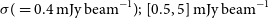 $\sigma(=0.53\,\mathrm{mJy\,beam}^{-1});\ [0.4, 10]\,\mathrm{mJy\,beam}^{-1}$