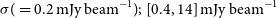 $\sigma(=0.2\,\mathrm{mJy\,beam}^{-1});\ [0.4, 14]\,\mathrm{mJy\,beam}^{-1}$