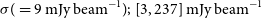 $\sigma(=9\,\mathrm{mJy\,beam}^{-1});\ [3, 237]\,\mathrm{mJy\,beam}^{-1}$