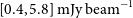 $[0.4, 5.8]\,\mathrm{mJy\,beam}^{-1}$