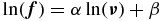 (7) $$\begin{equation} \ln ({\bm f}) = \alpha \ln ({\bm \nu }) + \beta \end{equation}$$