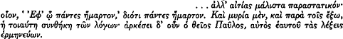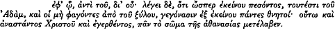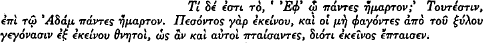 (which is repeated by John Damascene and Theophylact) suggests that he was specially concerned with the fact that men became mortal because of Adam (perhaps under the influence of 1 Cor. 15.21–22). A little later (col. 475) he says (on v. 14):