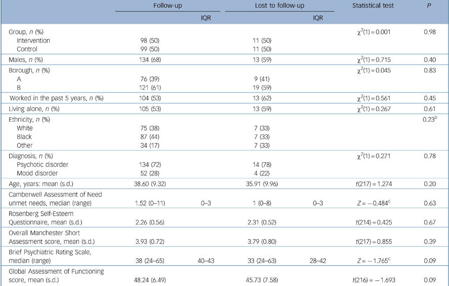Table 2 Sociodemographic and clinical variables comparing those participants who were and were not lost to follow-up at 1 yeara