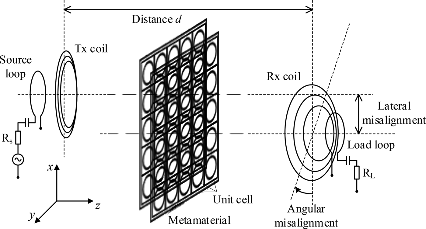 Fig. 17. Schematic of metamaterial-based WPT system with misaligned receiving coil.