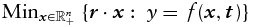${\bm{r}} \in \mathbb{R}_{ + + }^n$ the vector of prices for inputs x. Under the production function z = g 0(K, u, y) where y = f(x, t), and conditional on intermediate output y, a rational decision maker will always choose inputs x so as to minimize cost