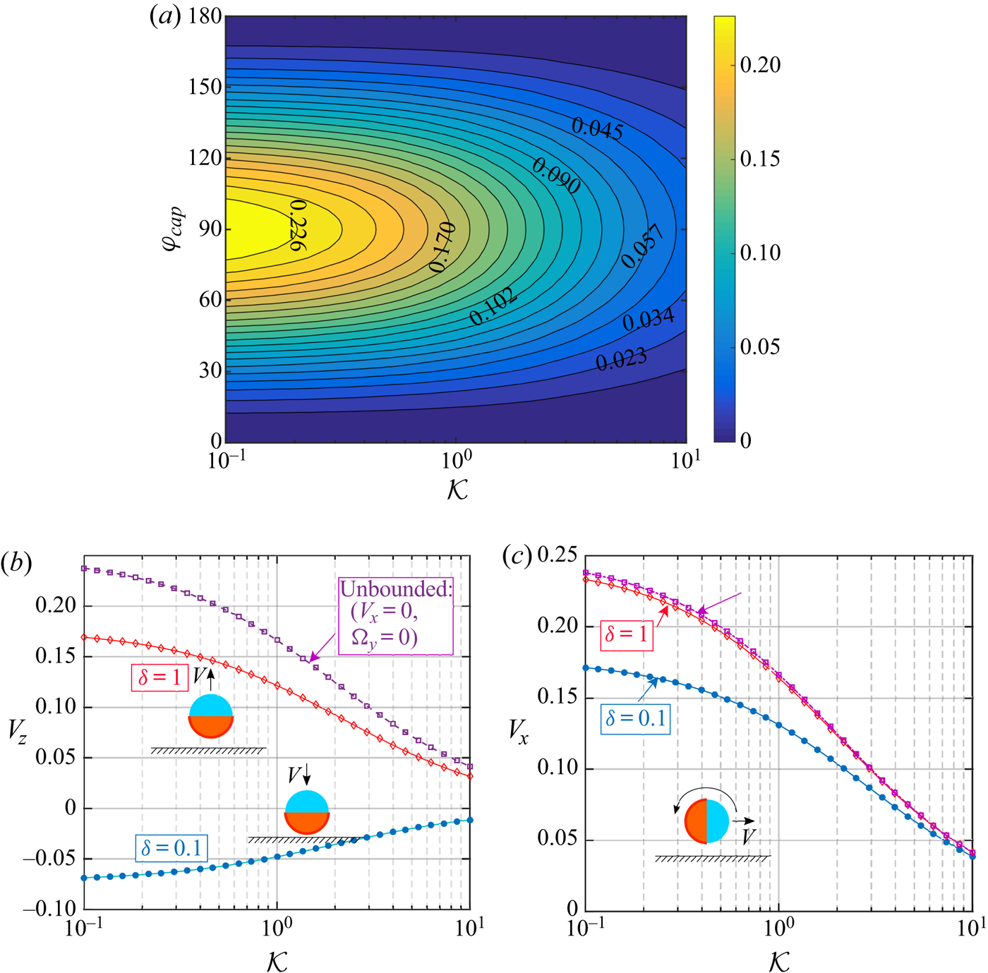 In addition, contrasts in thermal conductivity between the particle and surrounding fluid are likely to result in key dynamical evolutions by virtue of altering the incipient thermo-hydrodynamic characteristics (Chen Reference Chen1999, Reference Chen2000a,Reference Chenb). While the implications of a nearby isothermal wall on the latter are presumably very complicated, the aspect of thermal conductivity gradient-driven transport of an active micromotor by itself has turned out to be an unaddressed phenomenon, even in an unbounded-flow domain (Jiang et al. Reference Jiang, Yoshinaga and Sano2010; Bickel, Majee & Würger Reference Bickel, Majee and Würger2013).
