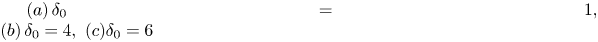 $(a)\, \delta_{0} = 1, (b)\, \delta_{0} = 4,\ (c) \delta_{0} = 6$