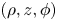 $(\rho ,z,\phi )$ (with origin at the plane wall and the