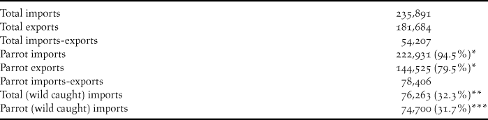 *** Percentage of wild caught parrot imports out of total bird imports.