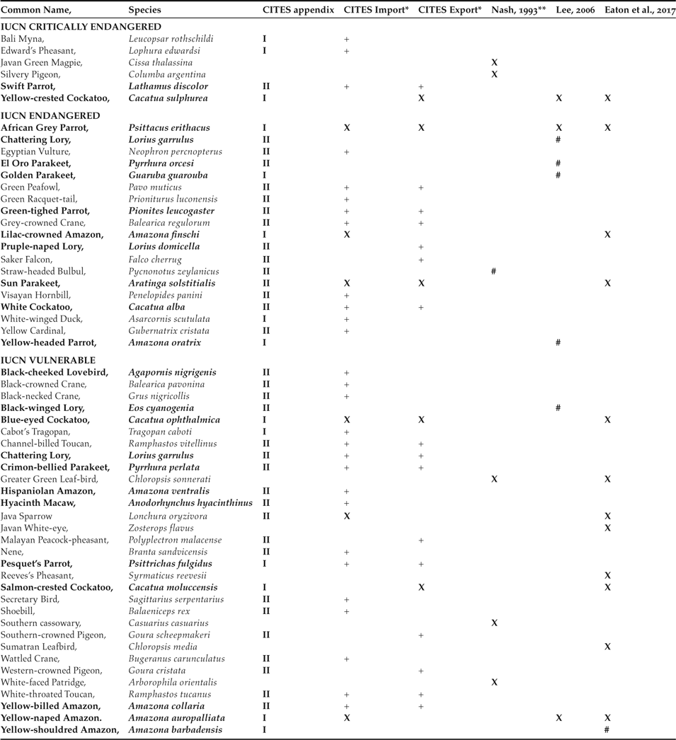 Table 2. List of IUCN threatened birds recorded at pet shops in Singapore by previous researchers. The list is compared with CITES trade data to identify birds that were imported but did not show up in market surveys and vice versa.