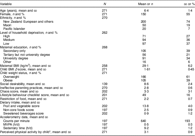 Table 1 Characteristics of the study population: children (n 271) aged 4–8 years, recruited in primary and secondary care, and their parents, Dunedin, New Zealand, March 2010–August 2011