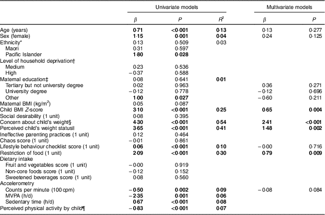 Table 3 Predictors of parental motivation to alter child’s body weight (using composite score for motivation), Dunedin, New Zealand, March 2010–August 2011