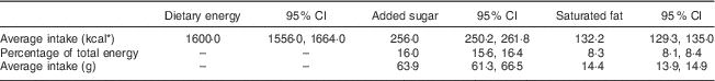 Table 1 Average daily dietary energy, added sugar and saturated fat intakes of Brazilian households, estimated from foods purchased in the 2008/2009 Brazilian Household Budget Survey