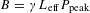 $B=\unicode[STIX]{x1D6FE}L_{\text{eff}}P_{\text{peak}}$