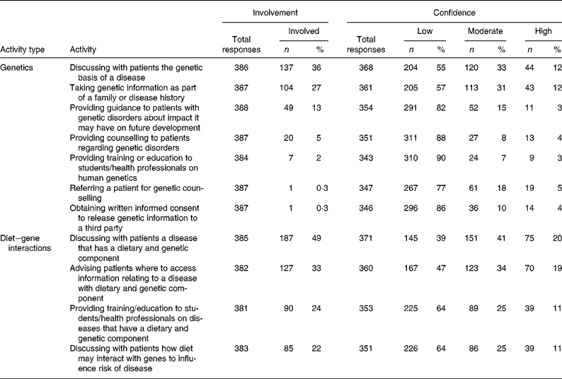 Table 1 Involvement and confidence of dietitians in activities relating to genetics and diet–gene interactions*