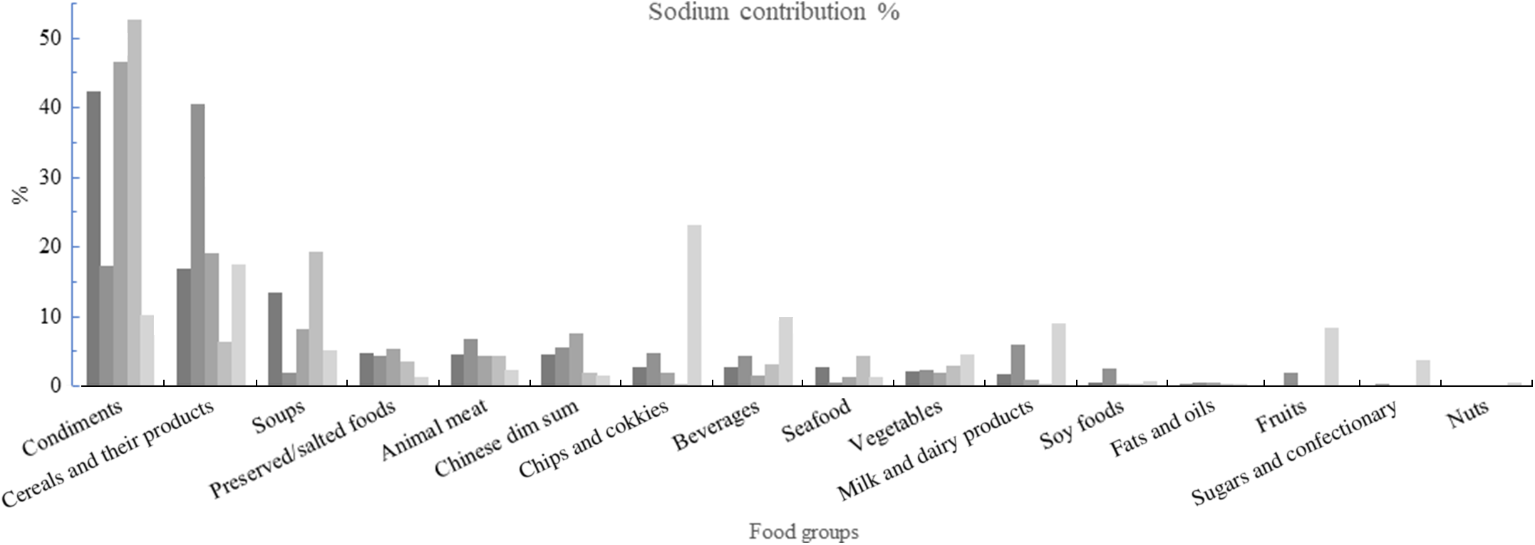 Fig. 1 Percentage contribution of food groups to dietary sodium intake among healthy Chinese adults aged 50 years and over in Hong Kong.