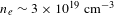 $n_{e}\sim 3\times 10^{19}~\text{cm}^{-3}$