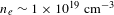 $n_{e}\sim 1\times 10^{19}~\text{cm}^{-3}$