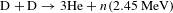 $\text{D}+\text{D}\rightarrow 3\text{He}+n(2.45~\text{MeV})$