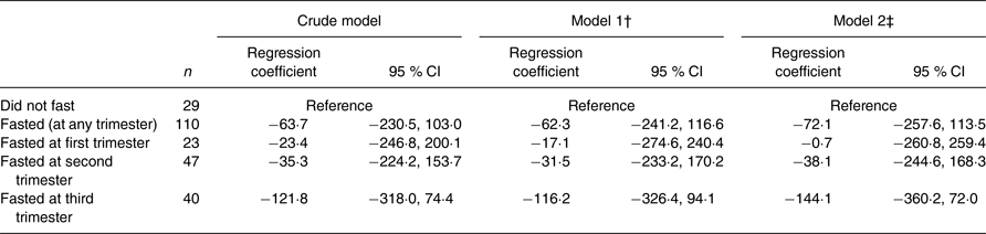 Table 3. Total and trimester-specific associations between maternal fasting during pregnancy and the birth weight of newborns*