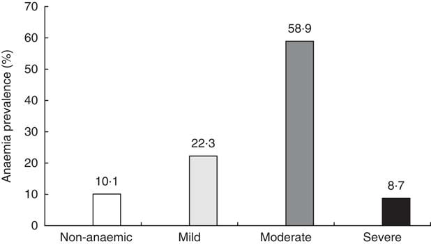 Fig. 2 Prevalence of anaemia at baseline among study children aged 6–23 months with Hb concentration measurement (n 440), Nioro Circle, Mali, January 2016.