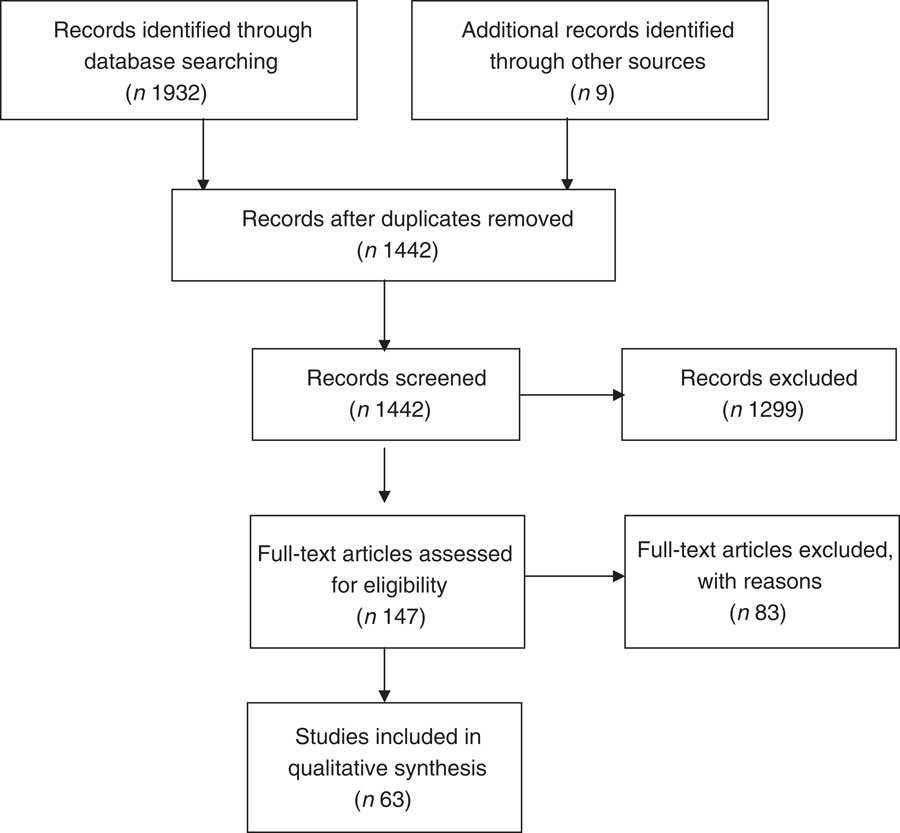 The studies from the initial search (n 1932) were reviewed against the inclusion criteria (see Table 2). Papers were excluded if they were not primarily concerned with the food or nutrition policy-making process or policy content. In addition, papers were excluded if they recommended developing a new policy but provided no detail on how that should occur or if they only examined the views of the community about general policy directions. The application of the criteria resulted in 147 eligible papers.