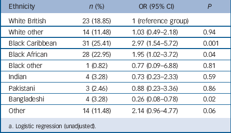 | Black Caribbean | 31 (25.41) | 2.97 (1.54–5.72) | 0.001 |