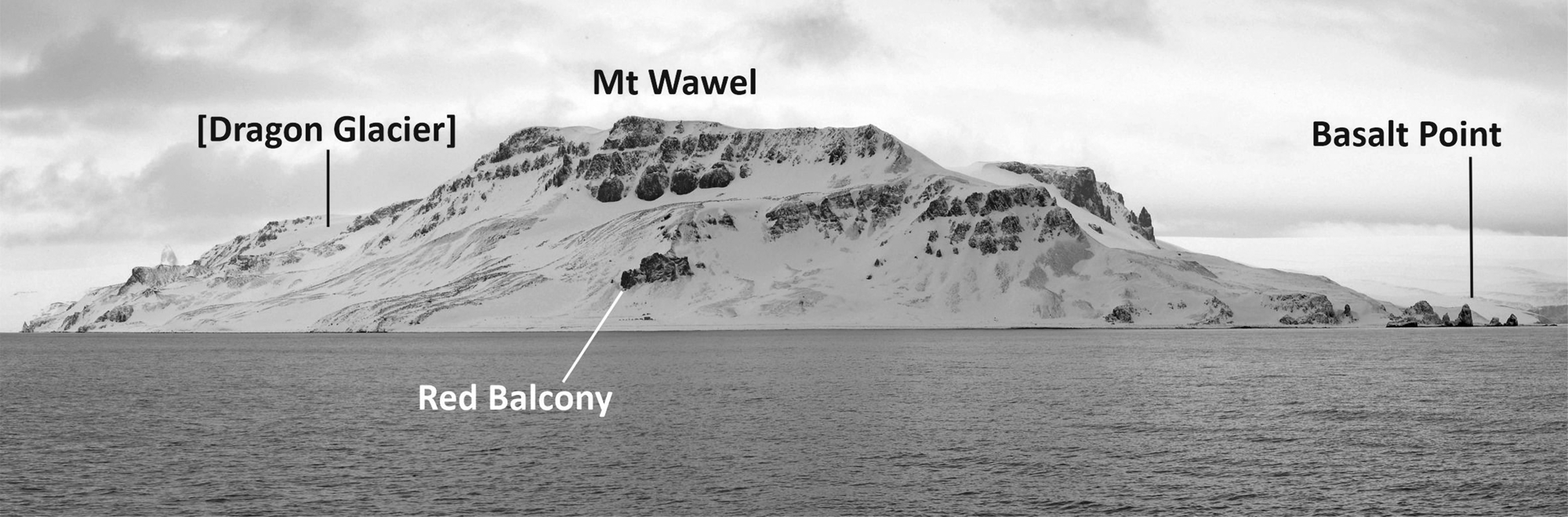 Point Hennequin is a prominent flat-topped rocky bluff situated at the north end of Admiralty Bay on its east side. It rises to c. 290 m above sea level at Mount Wawel (also known as Wawel Hill; Fig. 2). The geological succession is relatively simple and composed mainly of thick lavas that dip gently (< 20°) to the north-east (Fig. 3). It was described in outline by Barton (Reference Barton1965) and Smellie et al. (Reference Smellie, Pankhurst, Thomson and Davies1984). Barton (Reference Barton1965) included all of the outcrops, extending east to the head of Martel Inlet, within his Point Hennequin Group; no constituent formations were identified. Smellie et al. (Reference Smellie, Pankhurst, Thomson and Davies1984) published a geological map of Point Hennequin based on the field notes of C.M. Barton. They included all of the strata at Point Hennequin within a single lithologically and petrologically distinctive Hennequin Formation, which was tentatively correlated with numerous exposures across much of eastern King George Island and on the west coast of Admiralty Bay. The only published detailed study of Point Hennequin is by Birkenmajer (Reference Birkenmajer1981), who defined the sequence as the Point Hennequin Group, including two formations with significantly different ages: Viéville Glacier Formation (older) and Mount Wawel Formation (younger), each with defined members. Like Barton (Reference Barton1965), it was suggested that the Mount Wawel Formation included volcanic outcrops to the east of Lussich Cove up to the head of Martel Inlet, although the reasons for the correlation were unspecified. A total stratigraphical thickness of > 500 m was proposed for the Point Hennequin Group, comprising at least nine andesite lavas and interbedded agglomerates, together with a substantial pyroclastic unit named the Loggia Agglomerate Member. Two intrusive plugs were also identified and named the Red Balcony Member, inferred to be coeval with the Viéville Glacier Formation, and the Arcades Member. The Arcades Member together with another unit called the Loggia Agglomerate Member were envisaged as the magmatic and pyroclastic infills, respectively, of a substantial neck complex associated with the Mount Wawel Formation. In addition, numerous sedimentary erratics, discovered by Barton (Reference Barton1965) in a terminal moraine flanking the Dragon Glacier (later informally named the ‘Dragon Glacier plant beds’), were found to contain an important and diverse fossil macroflora ('Dragon Glacier flora' of Hunt & Poole Reference Hunt and Poole2003). Together with trace fossils of arthropods, they have been the subject of several studies (e.g. Birkenmajer & Zastawniak Reference Birkenmajer, Zastawniak and Crame1989, Hunt & Poole Reference Hunt and Poole2003, Uchman et al. Reference Uchman, Gaździcki and Błażejowski2018). Additional palaeofloras were found in situ close to the summit of Mount Wawel and in loose blocks of well-sorted laminated tuff or sandstone at the foot of Smok Hill and were informally called the Mount Wawel and Smok Hill floras, respectively (Hunt & Poole Reference Hunt and Poole2003).