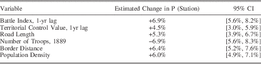 The substantive size of these effects is also more meaningful than other variables in the model. Table 2 displays the marginal effect of a 1-standard-deviation increase in all of the statistically significant variables in the model. Actual violence and strategic importance are as (or even more) important than structural factors like population density or road length.