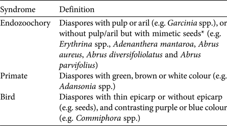 Table 5 Characteristics linked to endemic Madagascan plant species with a bird or primate syndrome, when syndromes are defined according to diaspore colour only.