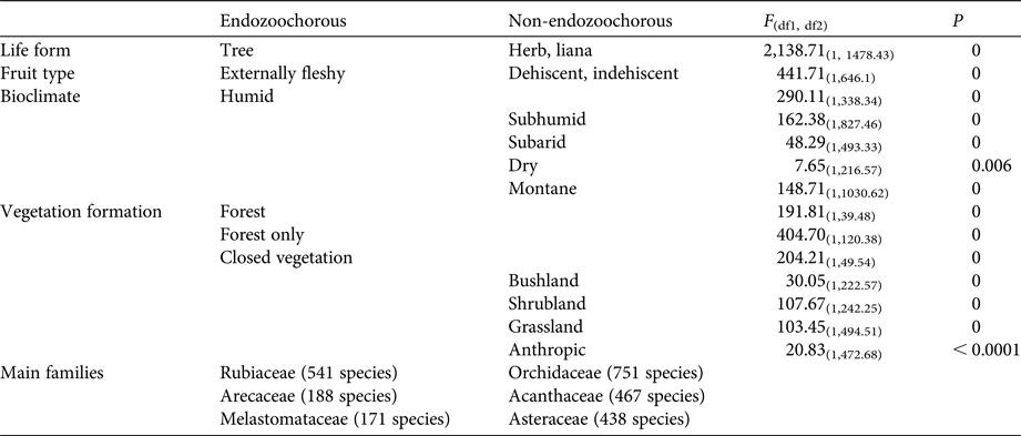 Table 4 Characteristics linked to endozoochorous and non-endozoochorous endemic Madagascan plant species.