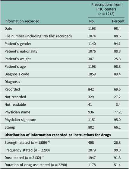 Table 4. Distribution of information recorded on prescriptions from PHC centers